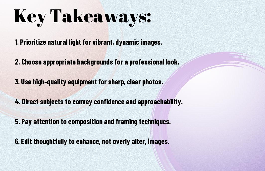 Over the years, corporate photography has evolved into a vital tool for businesses aiming to create a strong visual identity. You have the opportunity to highlight your brand’s professionalism and vision through compelling imagery. In this blog post, we’ll share ten crucial tips that will elevate your corporate photography skills, ensuring your images resonate with your audience and accurately portray your company’s values. Whether you’re a beginner or looking to refine your technique, these insights will help you capture stunning visuals that leave a lasting impact.