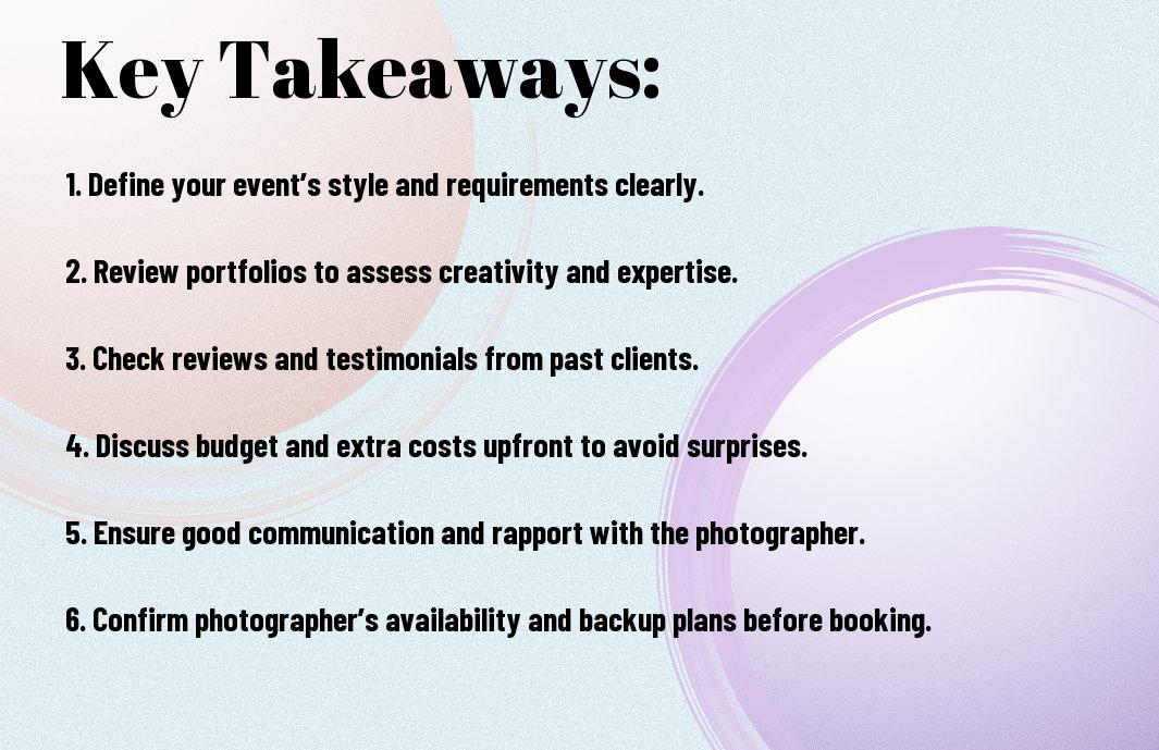 Hiring the right event photographer can make all the difference in capturing the essence of your special moments. With so many talented professionals available, you may feel overwhelmed in your search. That’s why we’ve compiled a list of 10 imperative tips to help you evaluate candidates and find the perfect fit for your vision and needs. From understanding your style preferences to evaluating portfolios, these guidelines will streamline your decision-making process and ensure your event is beautifully documented.