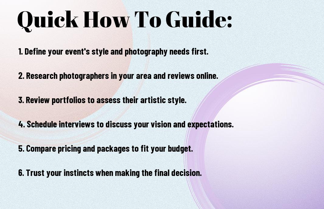 Just when you think about your special day, selecting the right event photographer might feel overwhelming. With so many options available, it’s vital to understand what to look for to ensure your moments are captured beautifully. In this guide, you will discover key factors to consider, from style and experience to budget and communication, helping you make an informed decision that aligns with your vision. Let’s explore into the vital steps to find the perfect photographer who will add a touch of artistry to your unforgettable event.