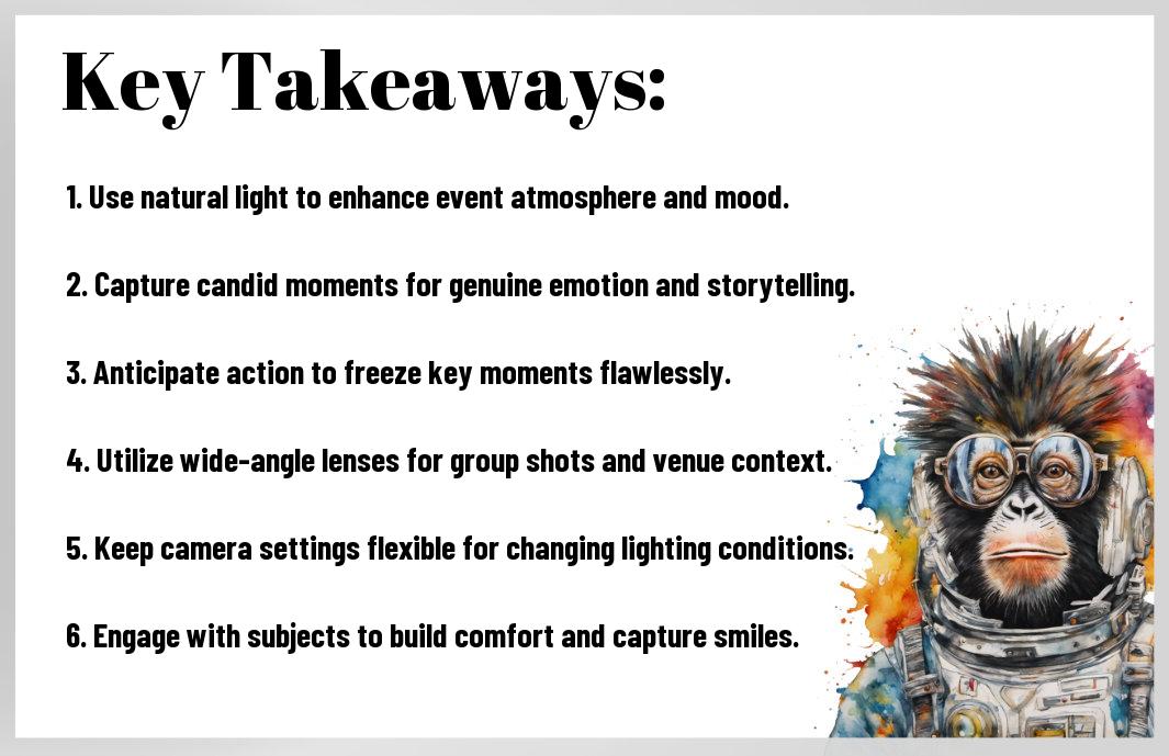 Many aspiring photographers find event photography both exciting and challenging. You have the unique opportunity to capture unforgettable moments, but achieving that perfect shot requires the right techniques and mindset. In this post, you will explore important strategies that will enhance your skills and help you document events with confidence. Whether you’re covering weddings, corporate gatherings, or family reunions, these tips will guide you in creating stunning images that truly tell the story of each occasion.