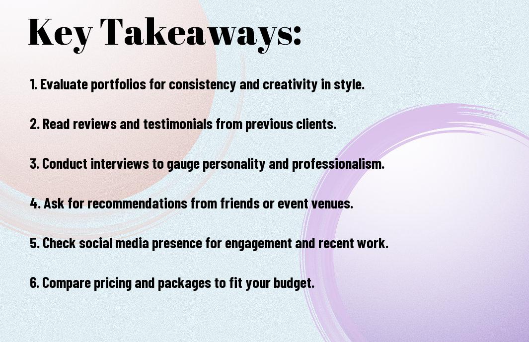 It is vital to utilize effective research strategies when looking for remarkable event photographers. Start by creating a list of potential candidates based on recommendations from friends, family, and online communities. Explore various platforms to find a diverse range of photographers who align with your style and budget. Dedicate time to investigate their backgrounds, specialties, and experiences to ensure you find the right match for your event.