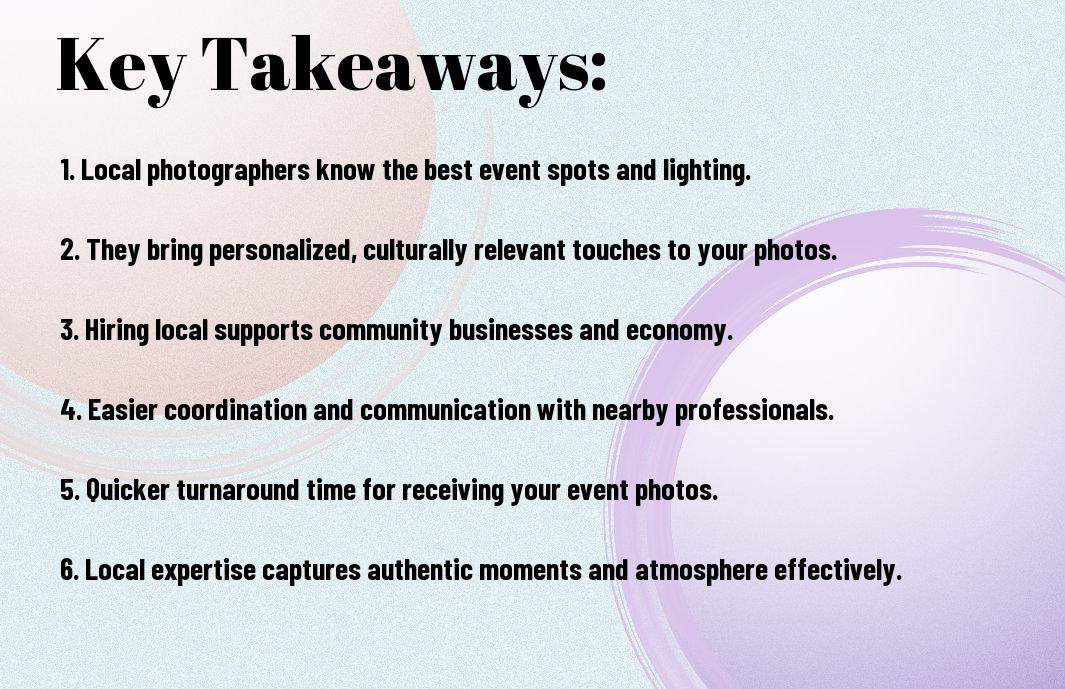 Hiring a local photographer not only connects you to a skilled professional but also fosters a sense of trust that enhances your overall experience. You benefit from their understanding of local customs, nuances, and scenery, ensuring that your event’s images are not just technically sound but resonate deeply with your community’s culture. With familiarity comes a sense of security, allowing you to let go and focus on your event while your photographer captures every moment beautifully.