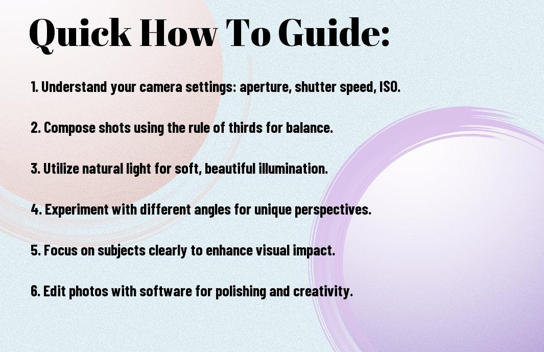 Most photography enthusiasts struggle to understand the foundational techniques that can elevate their images from ordinary to stunning. In this guide, you will explore masterful how-to techniques that will enhance your photography skills, from mastering light and composition to selecting the right equipment. As you probe into these basics, you’ll find practical tips and insights that empower you to create captivating photographs no matter your experience level. Get ready to unlock your creative potential and transform your approach to photography!
