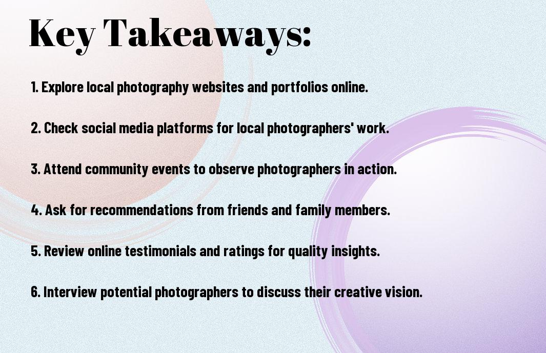Upon reflecting, your search for distinctive event photographers in your locale requires a strategic approach. Start by researching local portfolios, utilizing social media platforms, and seeking recommendations from friends or event venues. Participate in community events or fairs to meet photographers in person. Evaluating their style and professionalism, along with client reviews, will help ensure you make the best choice for your unique event. Trust your instincts, and don’t hesitate to reach out and discuss your vision, as a great photographer will resonate with your needs and ideas.