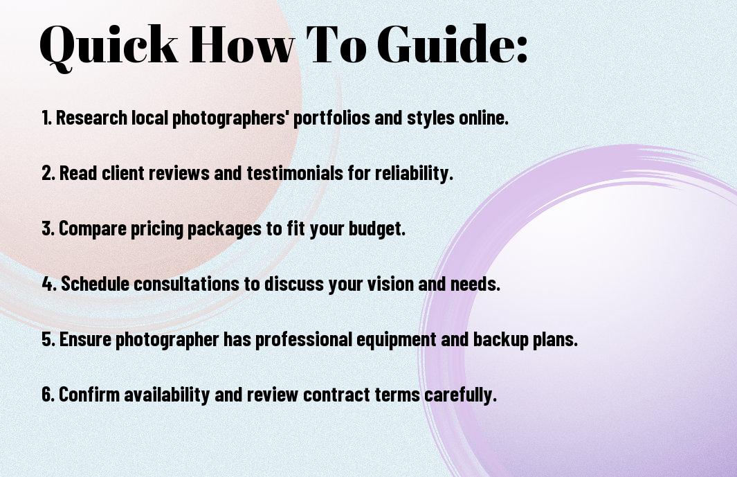 On the whole, selecting the best photographer in your area is about aligning their expertise with your vision. Assess their portfolio to ensure their style resonates with you, and don’t hesitate to ask for references to hear from previous clients. Evaluate their communication skills, as a good rapport will enhance your experience. Finally, consider your budget and find a photographer who offers quality within it. By taking these steps, you will capture memories that you’ll cherish for a lifetime.